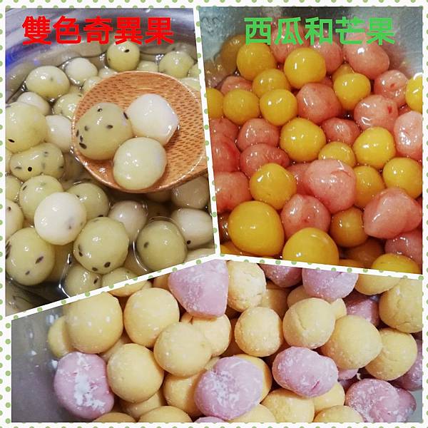 近期跟孩子一起做水果珍珠,步驟如下(無步驟圖)1.讓孩子將70克左右的水果壓成泥,煮沸,離火。2.分次加入混和粉(樹薯粉:日式太白粉 3:1)每種水果加入的粉量不同,我都先準備一量米杯的混合量,分次混入剛離火的果泥中。3.取出到桌面稍微揉至無粉(小心燙),若黏手則在加粉揉,加至搓揉時不黏手即可。4.搓成長條再切小塊跟小孩一起搓圓,加一些新粉防止沾黏。5.滾水煮5分鐘,撈起看要冰鎮還是直接裹糖都可以,冰鎮的會比較Q.